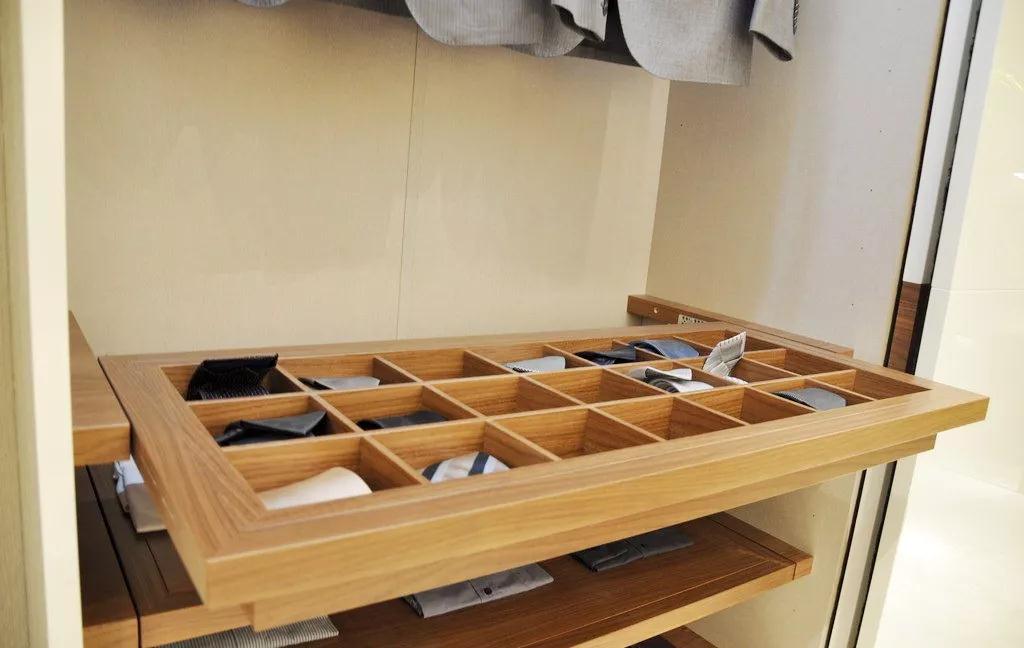 这也是衣帽间或者大衣柜可选择打造的区域,领带、各类首饰可以收纳在这里。