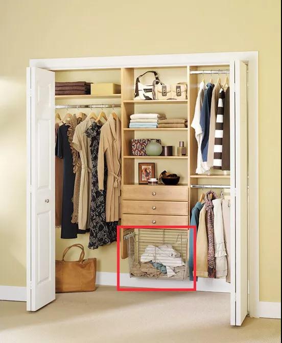 ● 打造好衣柜内部空间的第二步:善用各种收纳物件。有几个小物推荐给大家使用:抽屉盒、收纳盒、拉篮、衣柜分隔板、升降式挂衣杆,它们能让衣柜布局更合理。