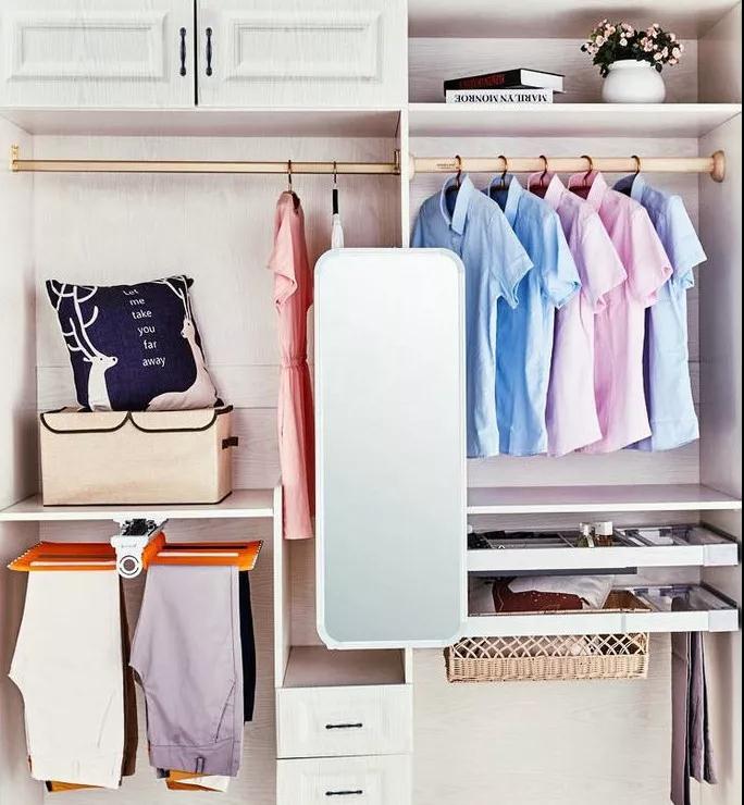 在衣柜中安装一个可推拉的换衣镜,省空间又方便。