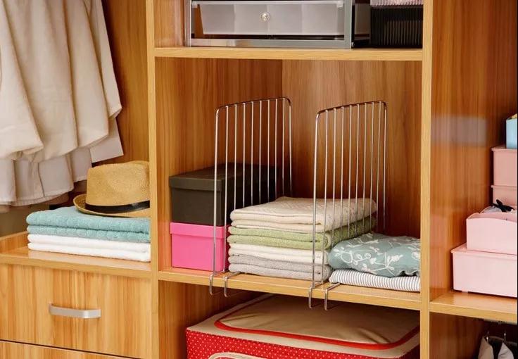 衣柜内部隔板空间不够用或者每层空间间隔太大,就可以使用衣柜分隔板来优化空间。