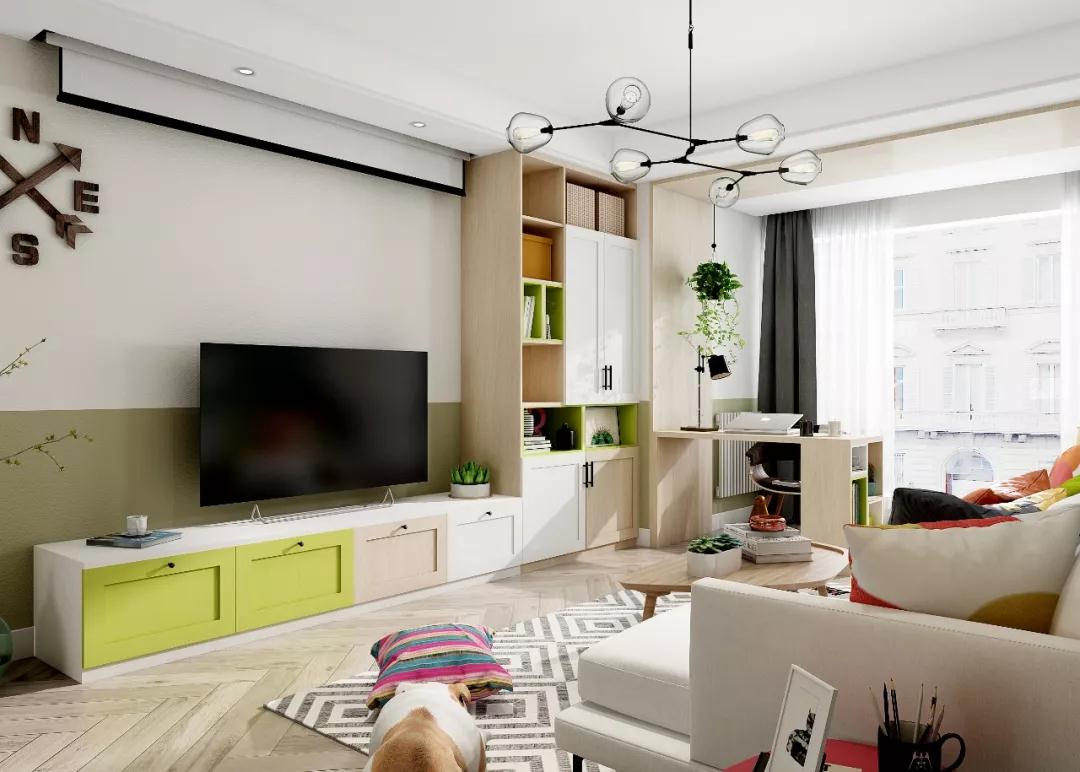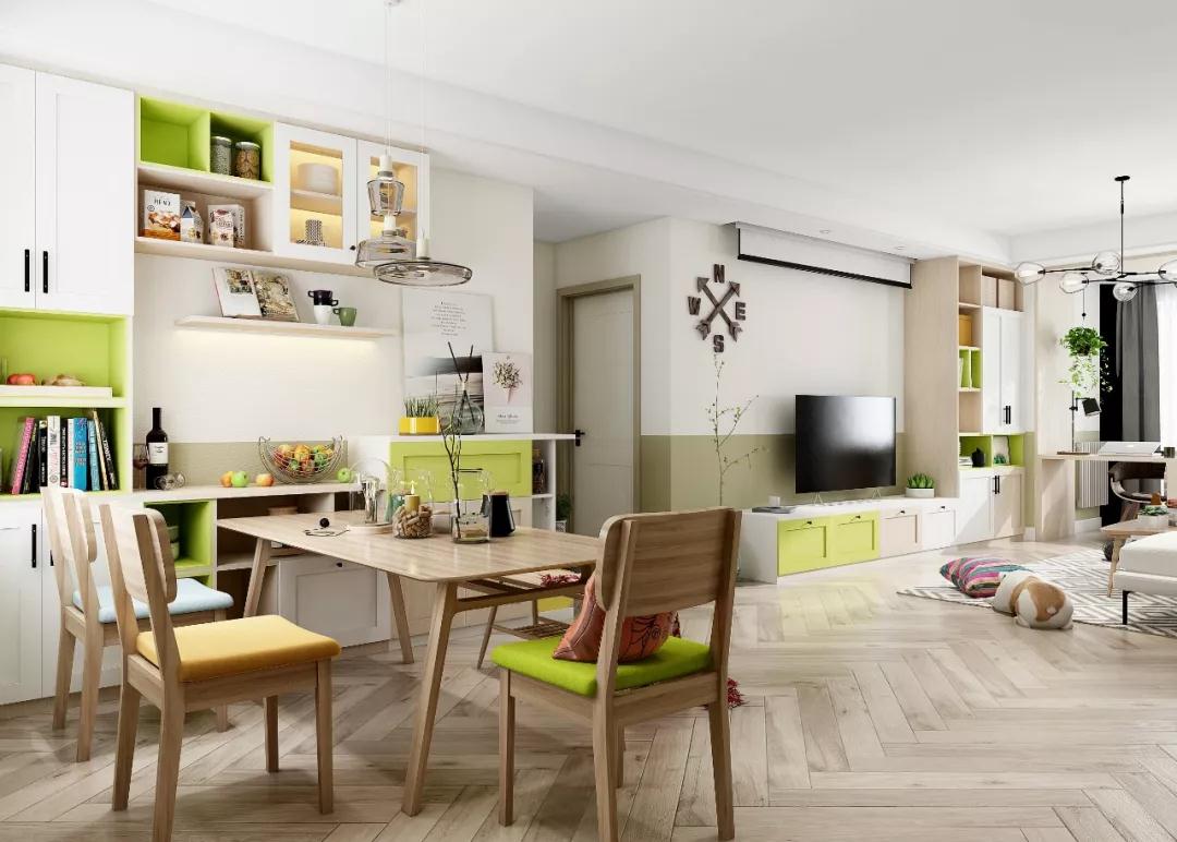 改造后的家,多多表示这就是自己想要的模样,之前觉得清新绿不好把控,没想到点缀在全屋的柜体和墙面上居然超有小清新的feel。