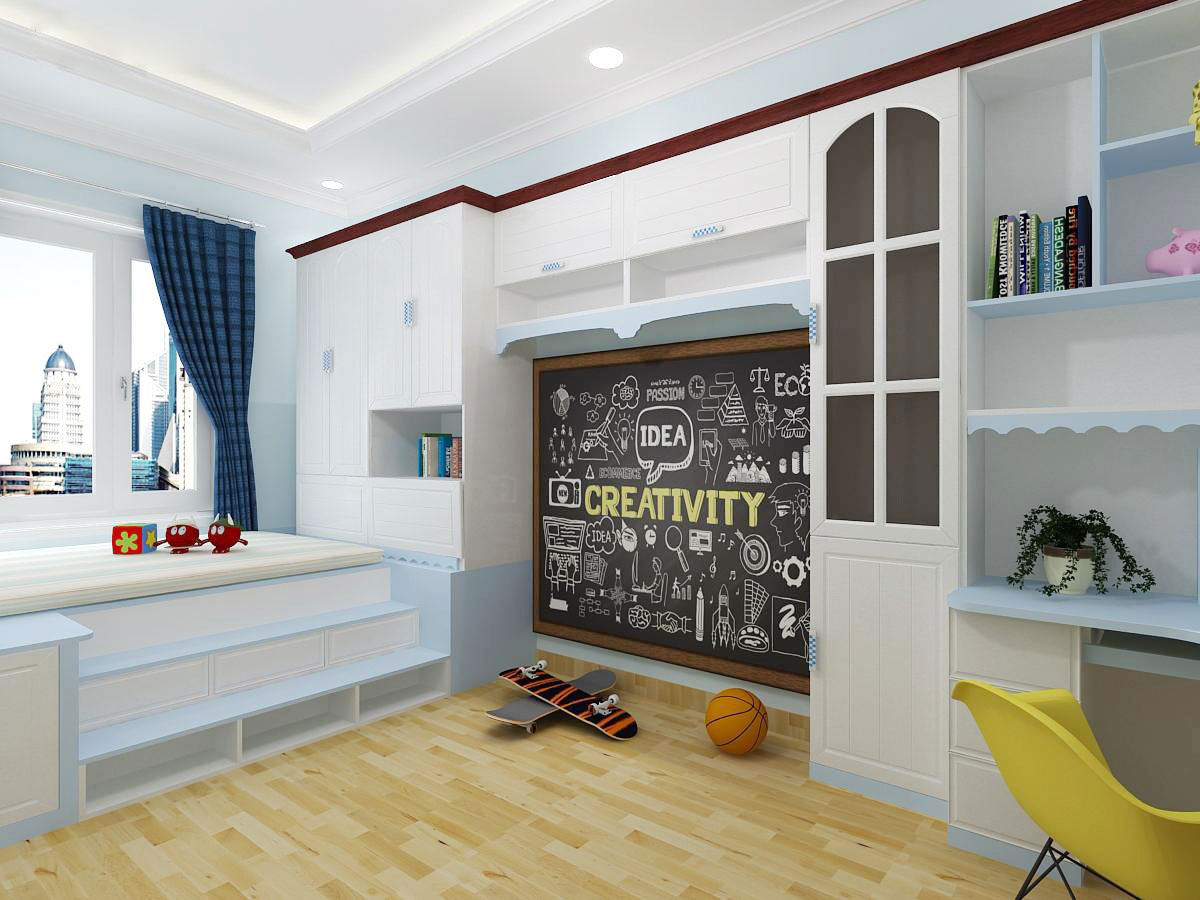 其实每一个大人,都曾经是一个孩子。最好的儿童房,需要大人们用童心看世界,用孩子喜欢的方式来打造。那些你曾对儿童房的幻想,恰好也是你的孩子对儿童房的期待。对于孩子来说,儿童房可以不大,但要满足简单的阅读、娱乐、储物需求,让他们拥有属于自己的小天地。